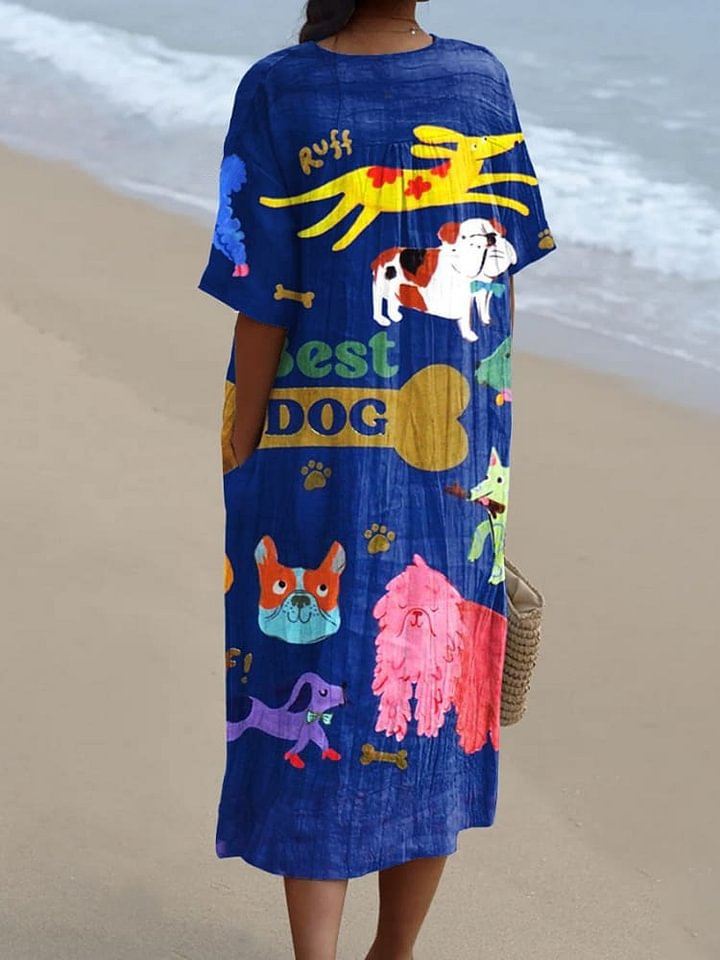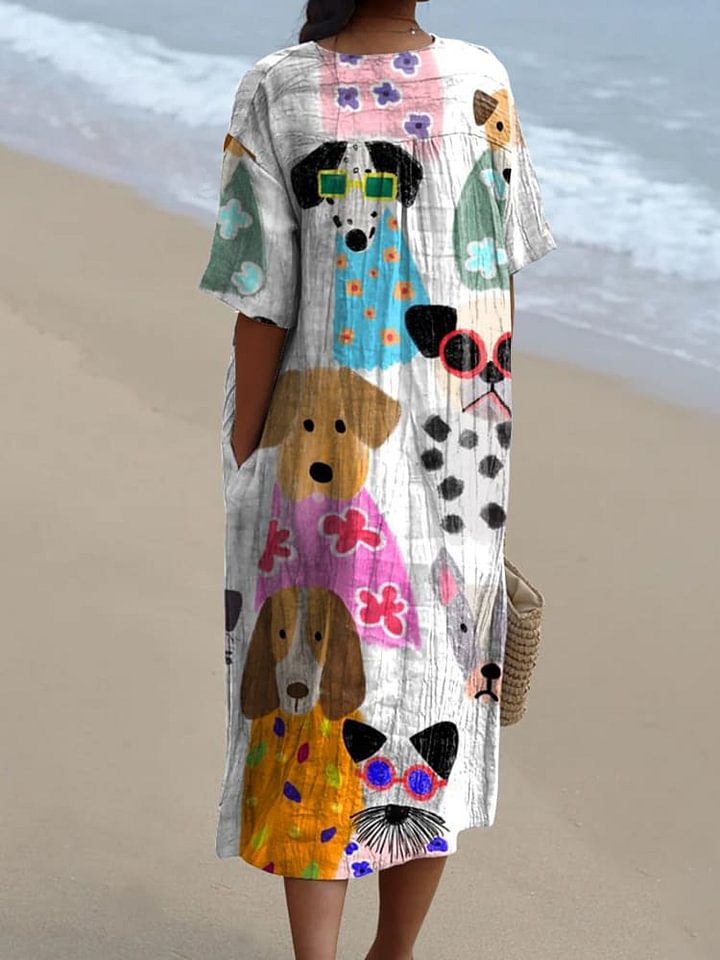 Women's Minimalist Colorful Cartoon Puppy Print Flowy Dress$36.99 USD$62.50 USD