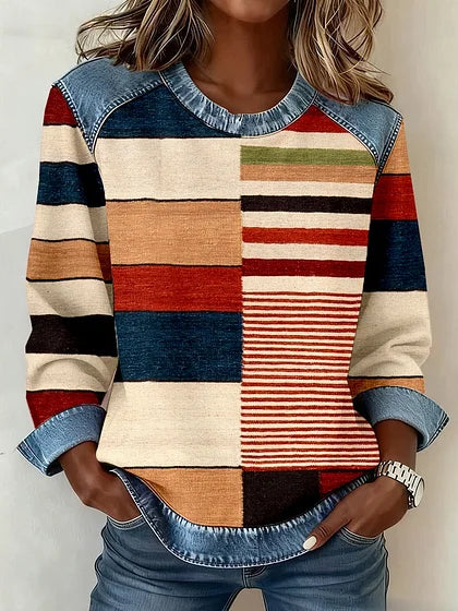 Women's Vintage Color Striped Pattern Patchwork Art Sweatshirt$36.99 USD$65.00 USD