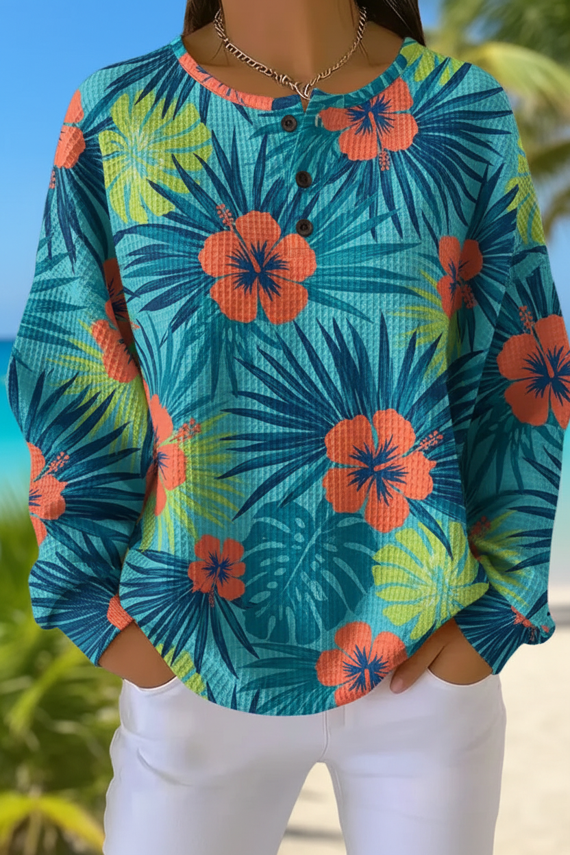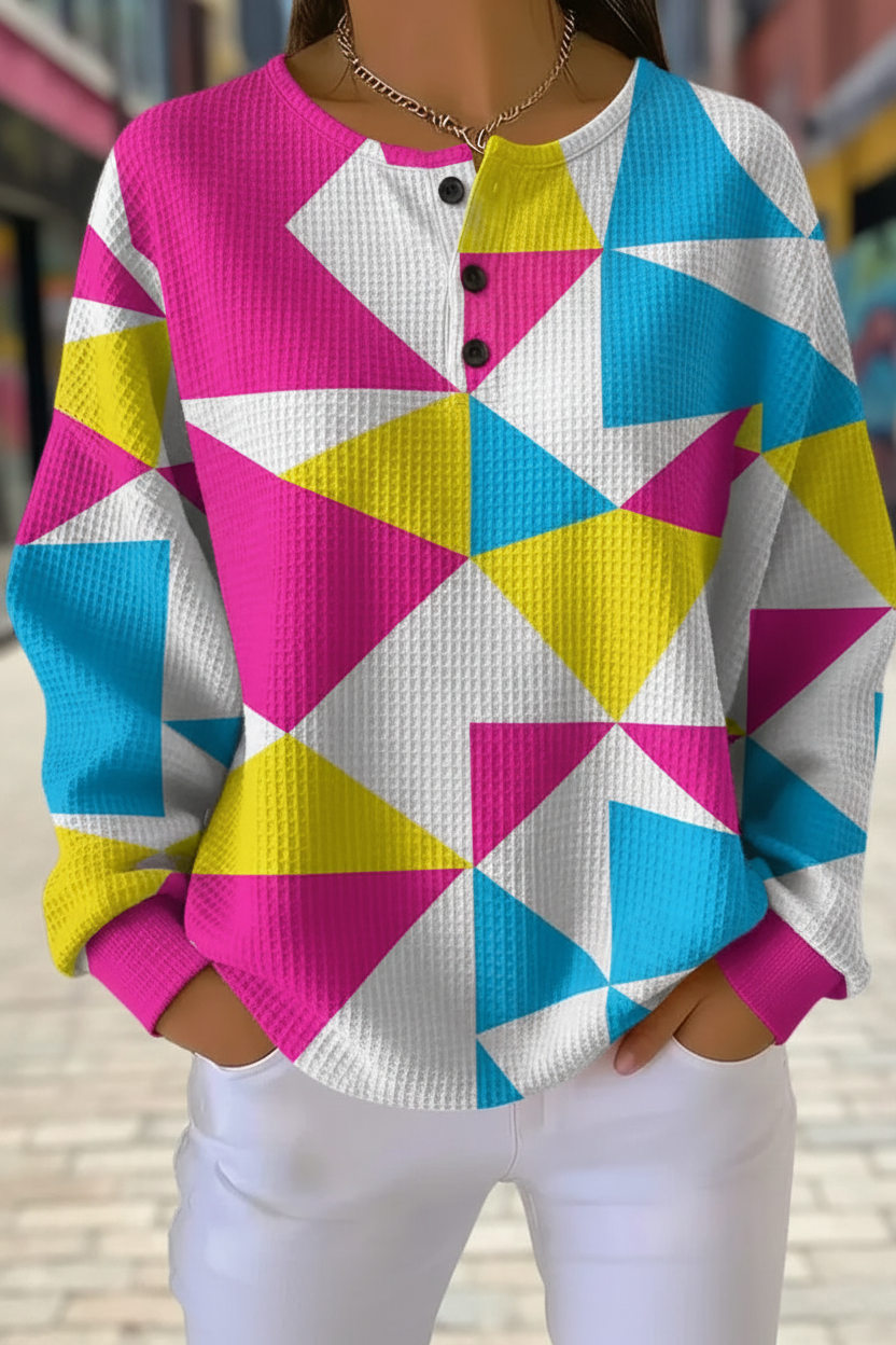 Women's Abstract Pattern Art Print Casual Waffle Sweatshirt RSWF609$36.99 USD$65.00 USD