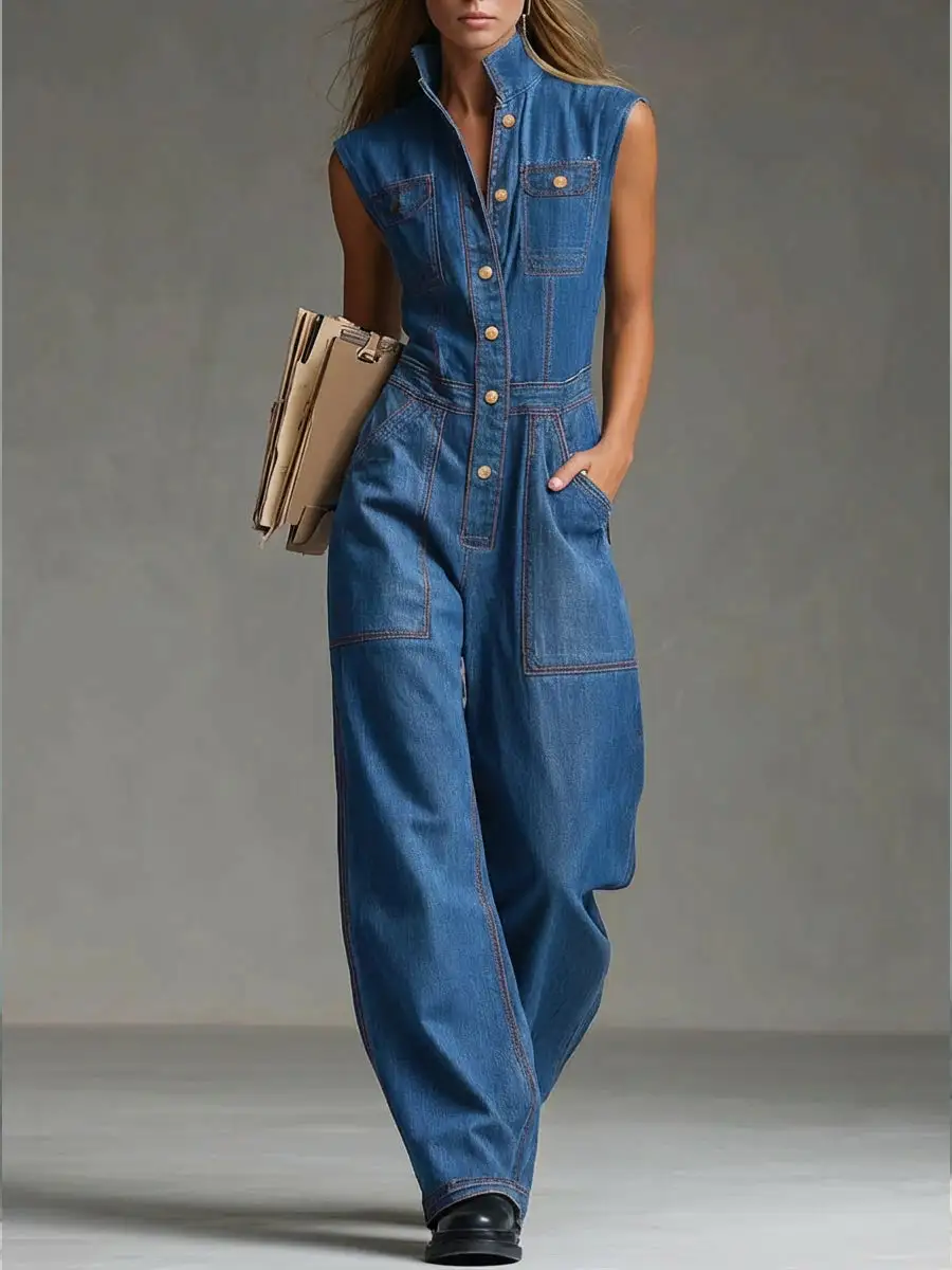 Women's Casual Sleeveless Cotton Denim Jumpsuit$4.99 USD$41.30 USD