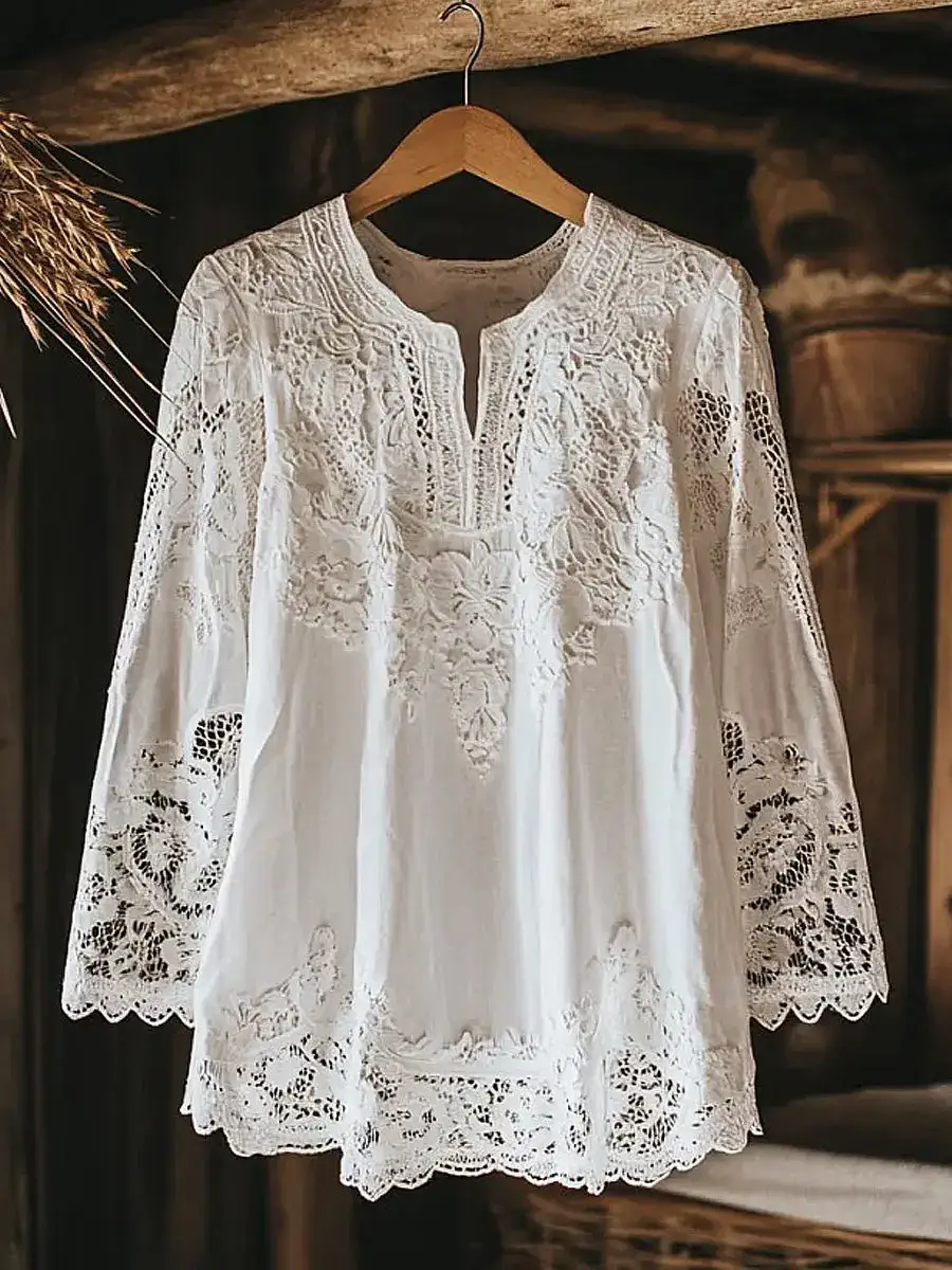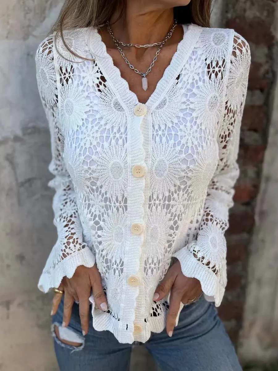 Women's V-neck Lace Casual Knit Top$4.99 USD$43.30 USD