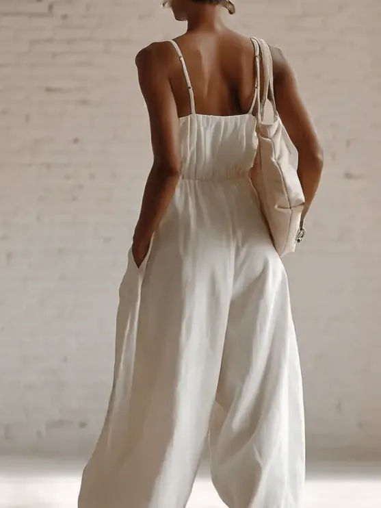 Elegant Vacation-style Spaghetti Straps Linen Jumpsuit$4.99 USD$41.80 USD