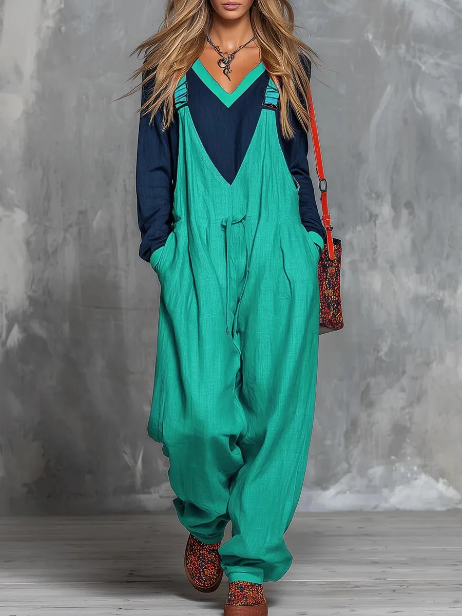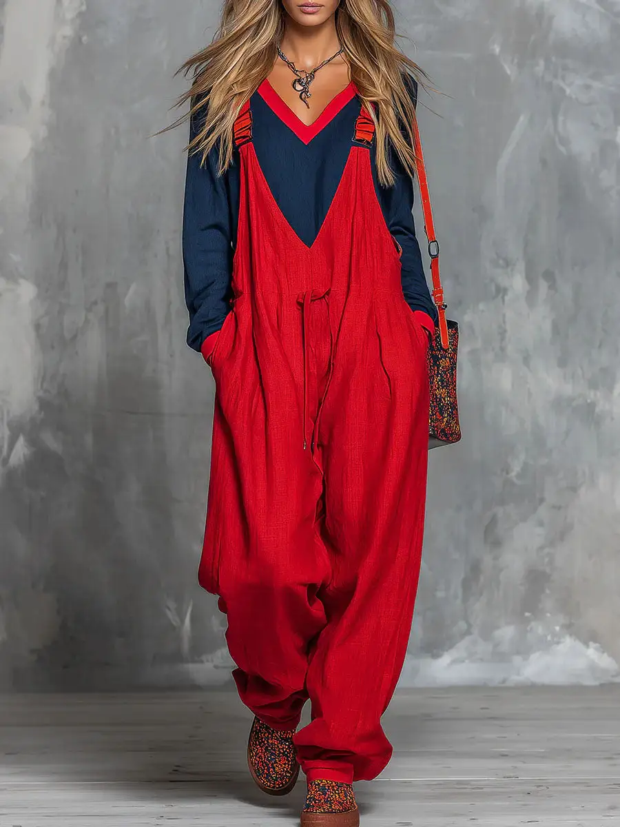 Women's V-neck Sleeveless Casual Loose Cotton And Linen Jumpsuit$4.99 USD$44.50 USD