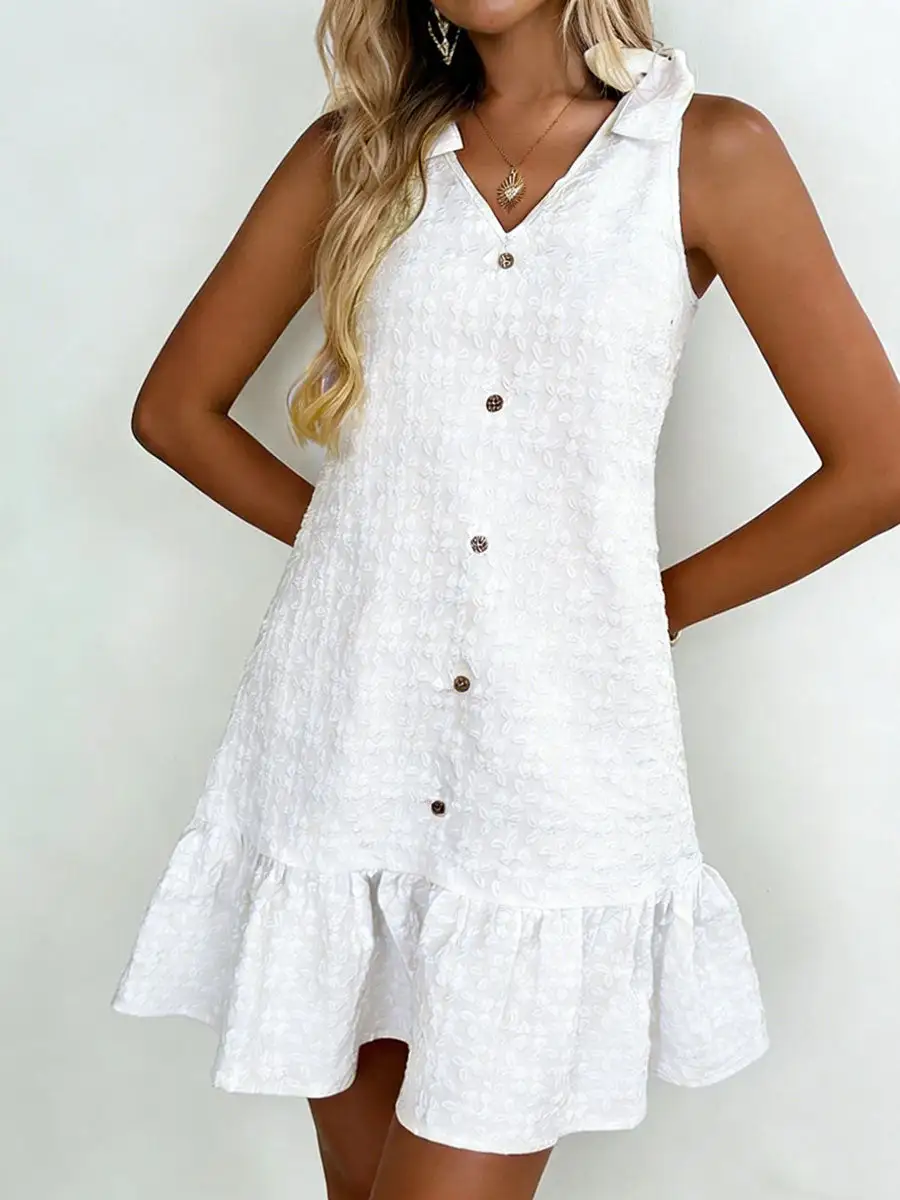 Women's V-neck Bow Strap Button Jacquard Sweet Dress$4.99 USD$46.59 USD