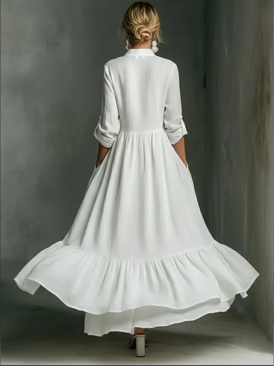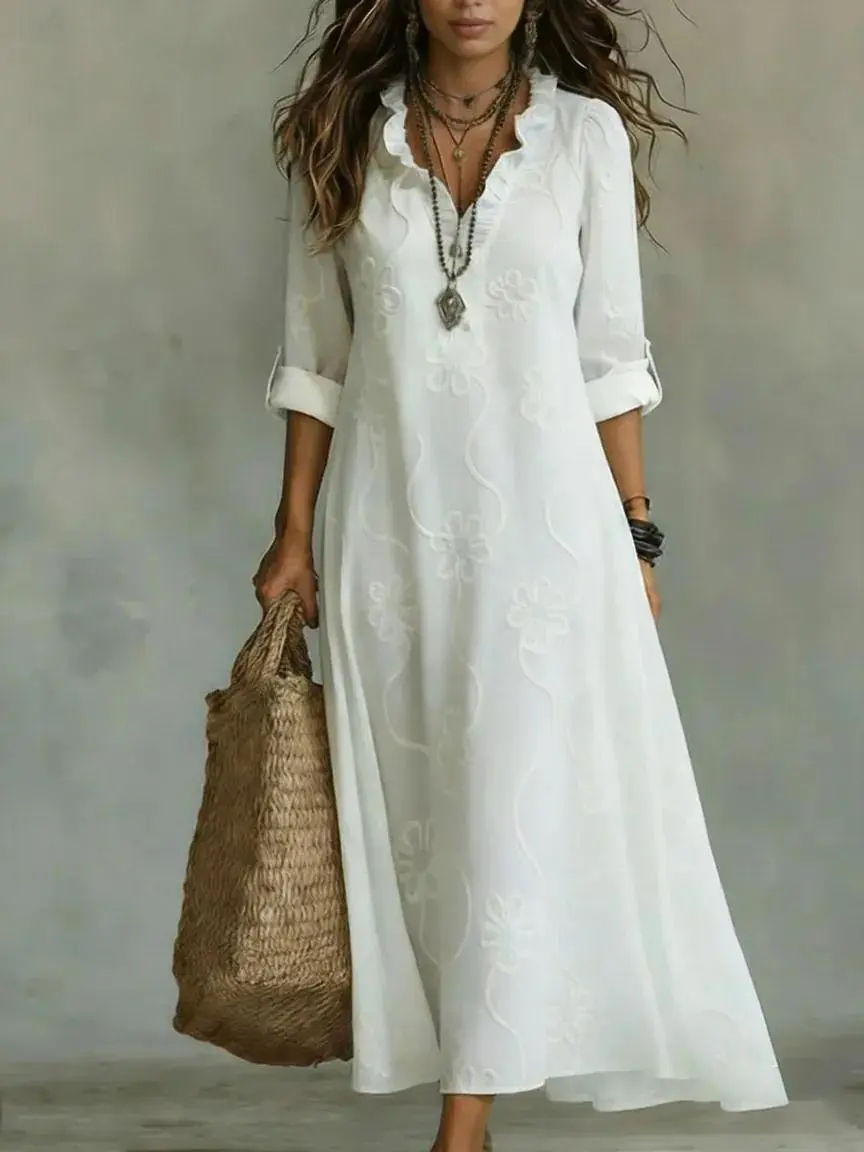 Elegant Three-dimensional Floral Cotton And Linen Maxi Dress$4.99 USD$46.40 USD