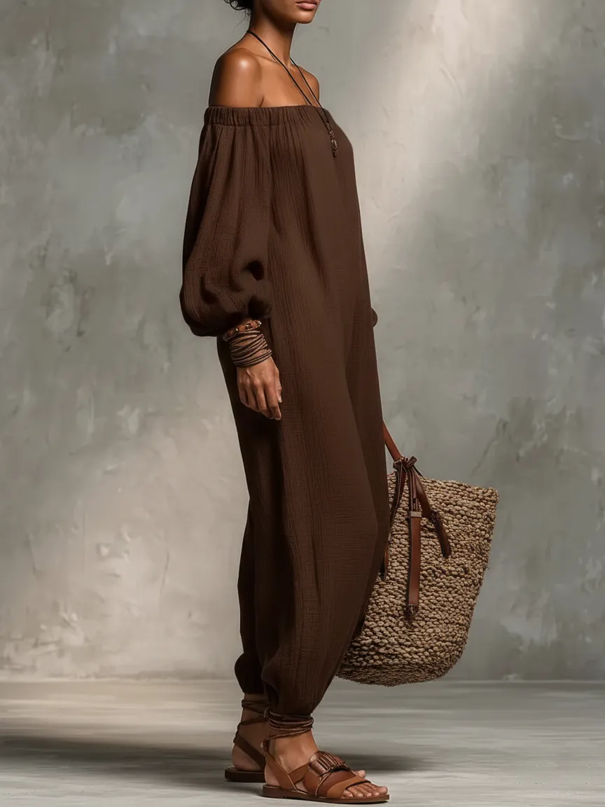Elegant Vacation Casual Off-the-shoulder Cotton Jumpsuit$4.99 USD$48.79 USD