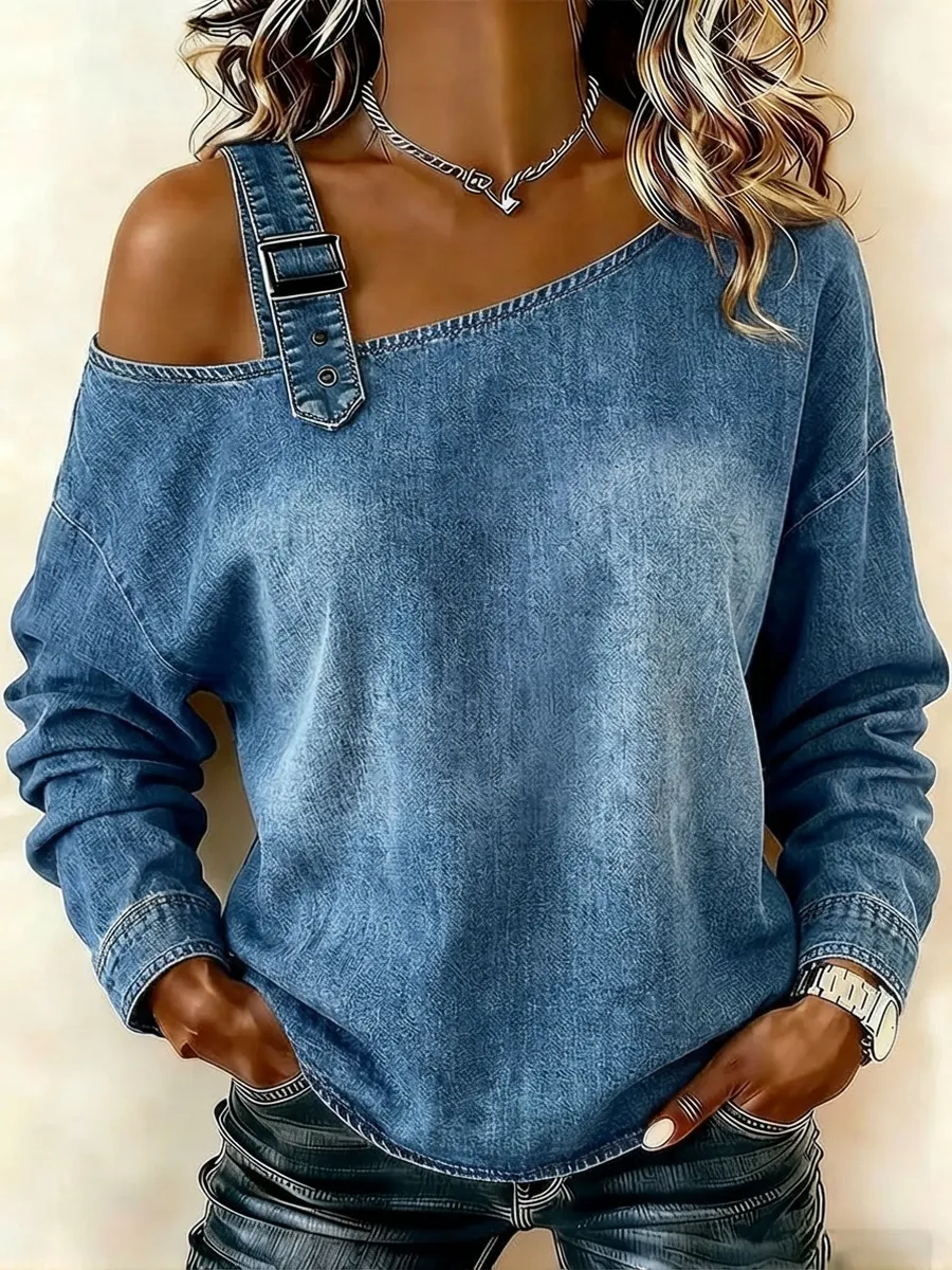 Women's one-shoulder strap denim shirt$4.99 USD$49.00 USD