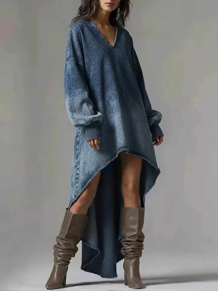 Cozy V-neck Loose-fitting Denim Shirt Top$4.99 USD$39.60 USD