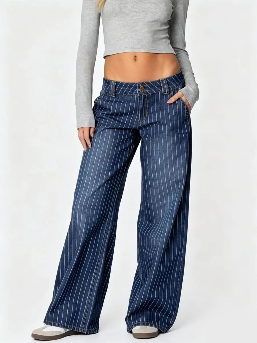 Women's Casual Striped Wide-leg Denim Pants$8.99 USD$62.99 USD
