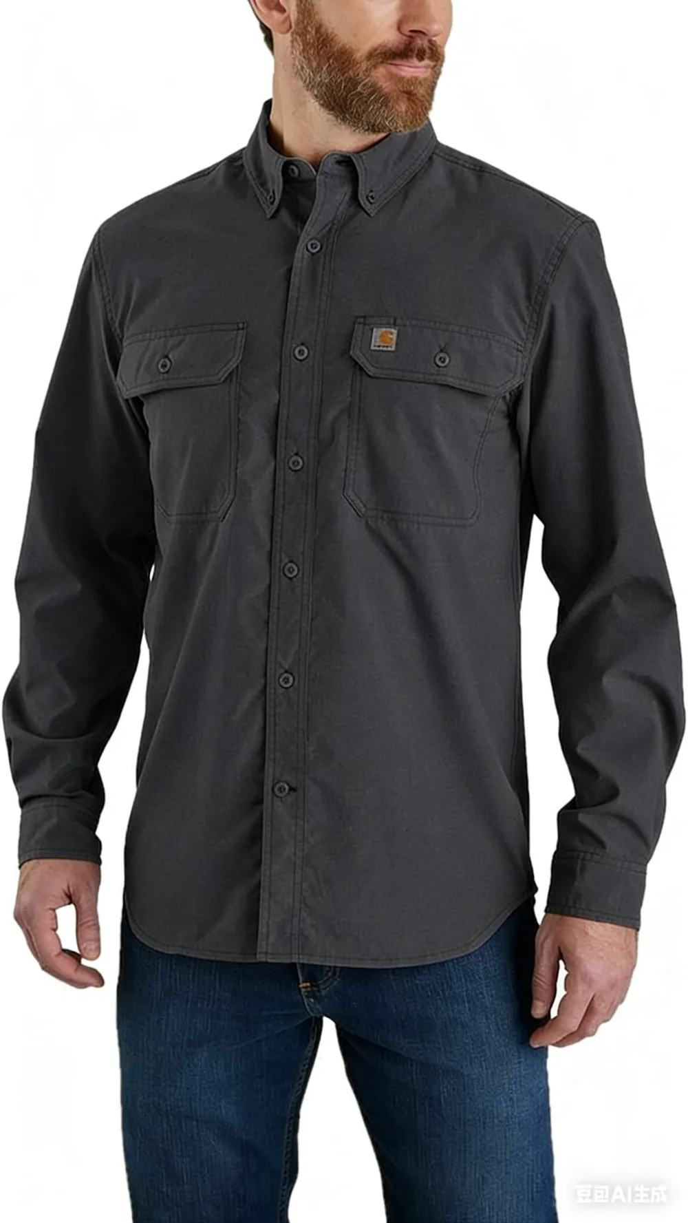 Symmetrical patch pocket design on the chest, with a buttoned lid for decoration and practicality, suitable for storing small items; The brand's iconic woven label is sewn above the pocket, highlighting the lineage of the workwear.