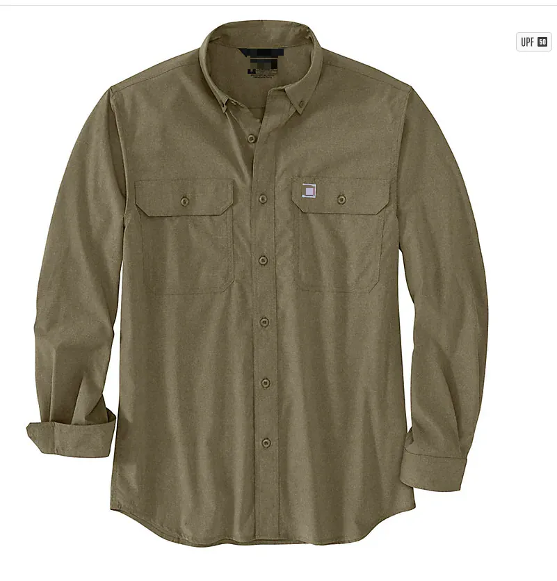 This comfortable button-up shirt is the perfect choice for your team when extra warmth is needed in hot weather. The men's long-sleeved shirt features sweat-wicking, moisture-dispersing, and odor-resistant properties. Made from lightweight young cloth fabric with UPF 50+ sun protection, it offers full elasticity for unrestricted movement. It includes two chest pockets and a pen loop.