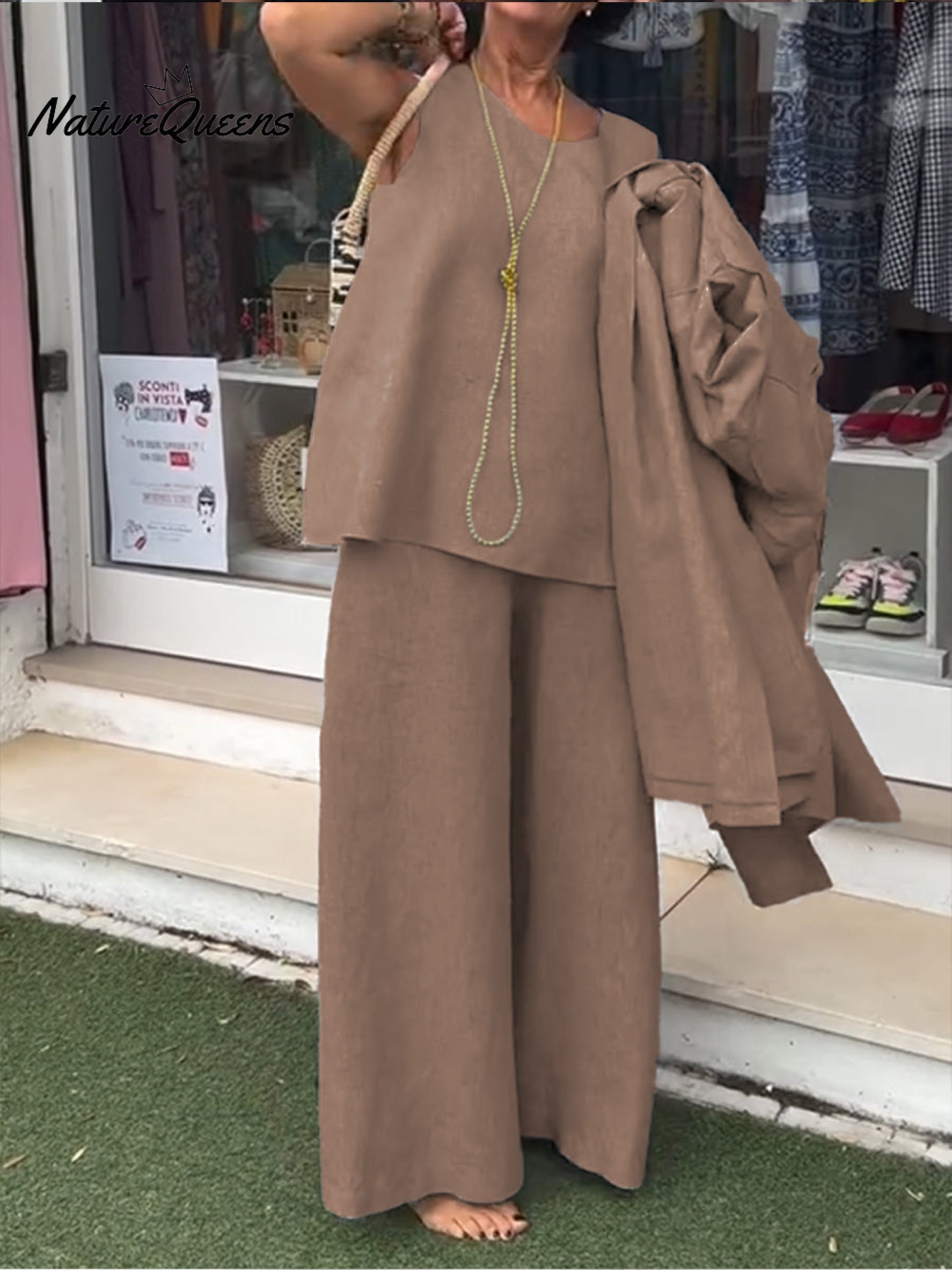 Women's Casual Cotton and Linen Sleeveless Top and Pants Two-piece Set