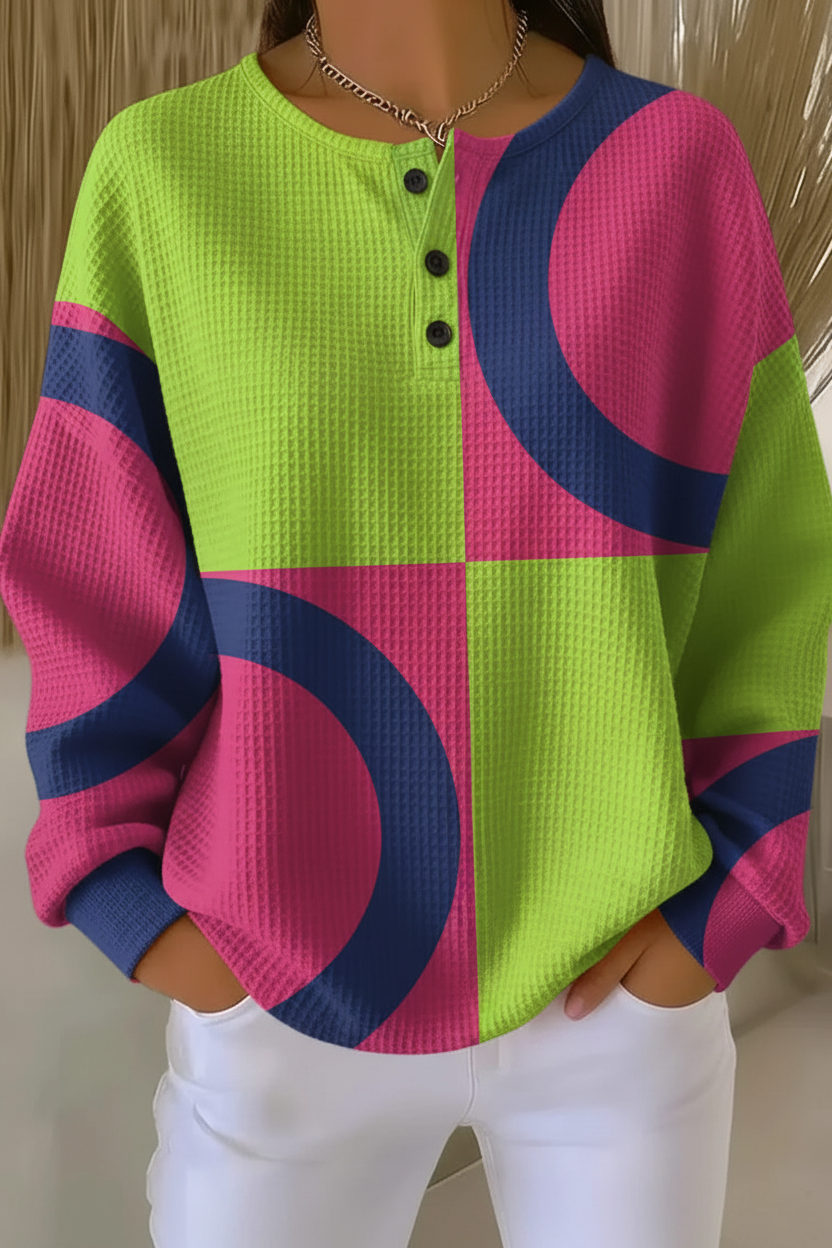 Women's Gradient Pattern Art Print Casual Waffle Sweatshirt RSWF1207