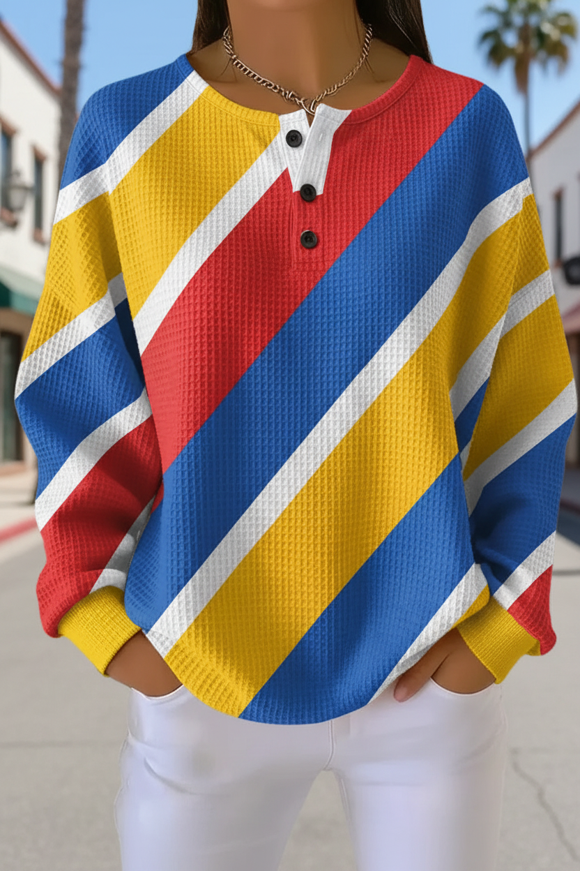 Women's Gradient Pattern Art Print Casual Waffle Sweatshirt RSWF1210